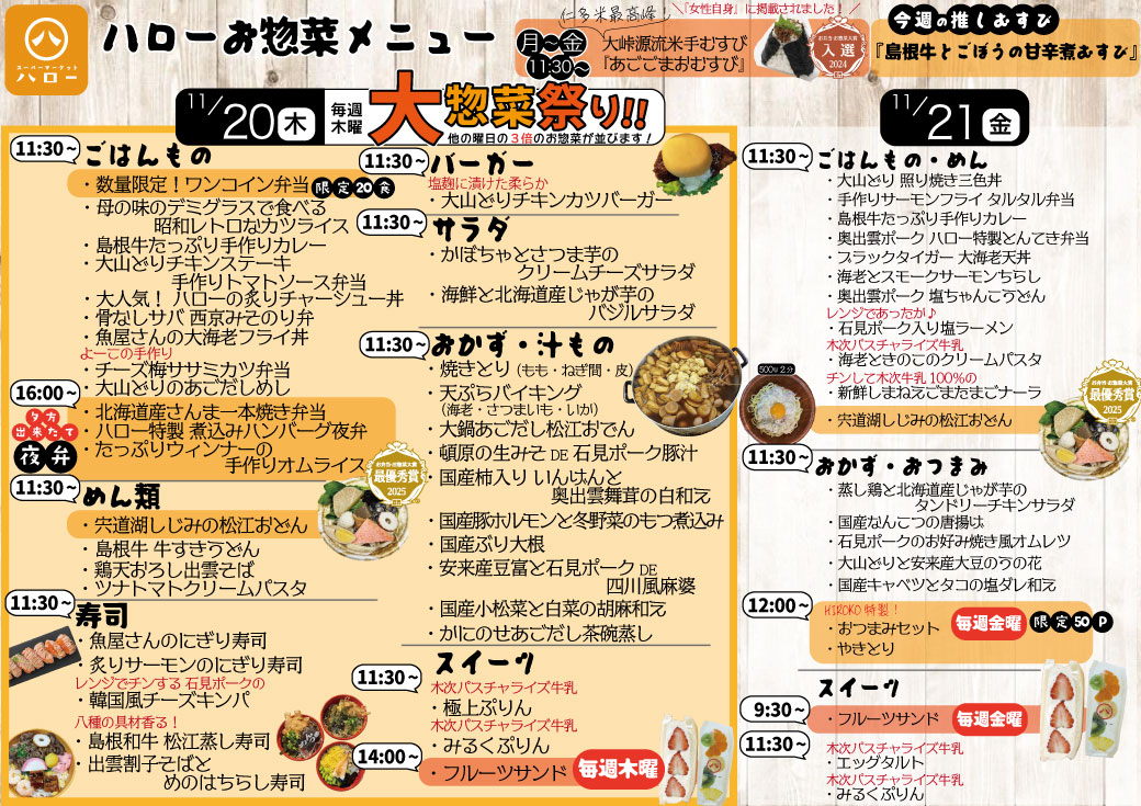 新鮮、安い、おいしい「野菜」・「お魚」・「お肉」と、主婦の味方「手づくりのお惣菜」を中心に、小さくても地域の方に喜んでいただけるスーパーを目指しています。