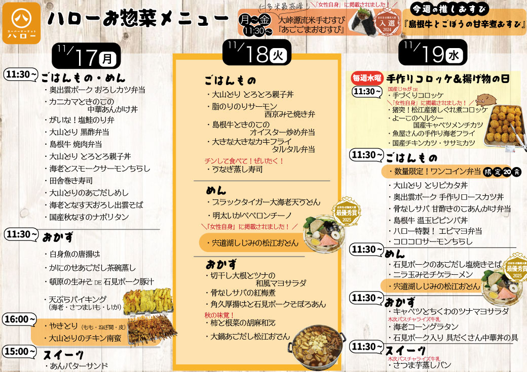 新鮮、安い、おいしい「野菜」・「お魚」・「お肉」と、主婦の味方「手づくりのお惣菜」を中心に、小さくても地域の方に喜んでいただけるスーパーを目指しています。