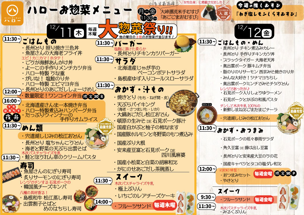 新鮮、安い、おいしい「野菜」・「お魚」・「お肉」と、主婦の味方「手づくりのお惣菜」を中心に、小さくても地域の方に喜んでいただけるスーパーを目指しています。